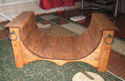 Si es fa una pila de llenya per a una xemeneia amb les seves pròpies mans, és millor quedar-se en un model de fusta. La fusta és fàcil de processar i després d’obrir-se amb vernís adquireix un aspecte preciós. La forma més senzilla de fer una estructura de fusta és a partir d’un barril. Si la granja disposa d’aquest contenidor, s’haurà de desmuntar en taulons separats. Cada element està cargolat a un cèrcol metàl·lic. Però primer cal tallar-lo per fer un semicercle. Al final, hauria de sortir un contenidor per a llenya dels taulers. Sota ell, es retalla un marc d’un tauler ampli o aglomerat. Les potes estan fetes amb bigues de fusta. L’estructura acabada s’obre amb un vernís amb un pigment colorant del color de l’arbre.