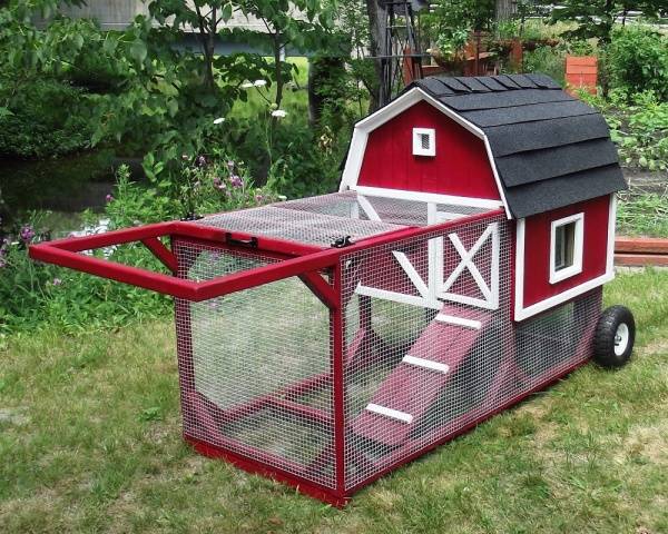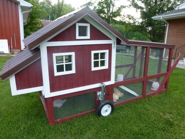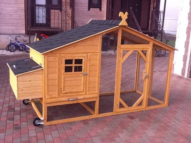 Segons el mètode de transferència, es divideixen en estructures sobre rodes i cases d’aviram que es poden transportar a mà. A les fotos presentades podeu veure aquests productes.