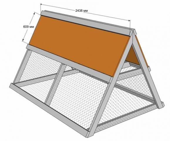- Després es fa el sostre. Es pot fer a partir de fulls de fusta contraxapada. El sostre es pot elevar a altes temperatures. Val la pena recordar que una de les parts del sostre del galliner portàtil ha de ser extraïble. Això és necessari perquè, si cal, pugueu netejar l'estructura.
