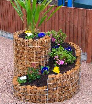 Aquest mètode subratlla perfectament la bellesa del paisatge, que inclou tobogans alpins, parapets o graons de pedres naturals, diversos embassaments decorats amb llambordes. Per implementar aquest projecte, la malla ha de doblar-se en forma de cargol i ha d’haver-hi dues capes: són malles galvanitzades idèntiques que funcionen paral·leles entre si a poca distància. Les pedres s’aboquen entre les quadrícules: poden ser còdols o pedres més grans; aquí tot depèn de la mida de les cel·les de la quadrícula. El sòl s'aboca a l'espai lliure dins del "cargol", és aquí on es planten les llavors o plàntules de petúnies.