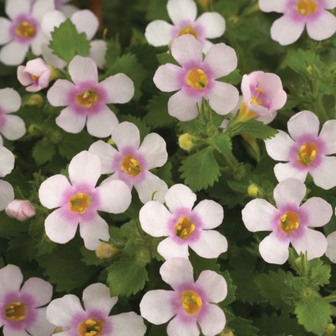 Ampel Bacopa, o Sutera, és una galant flor perenne de la família dels plàtans, que creix en el seu entorn natural a partir de pantans tropicals i subtropicals d’Austràlia, Àfrica, Amèrica i Àsia. La planta és un arbust ornamental baix amb un dens "cap" de fullatge i inflorescències, amb una base àmplia. La floració de les varietats ampeloses de Bacopa dura en onades, durant tot el període estival: les flors floreixen i s’esvaeixen; la planta deixa el seu color i, després d’una breu calma, torna a florir. Els dissenyadors de paisatges moderns prefereixen àmplies varietats de bakopa en el disseny de l’autor de balcons, terrasses, parterres, parterres, mixborders.