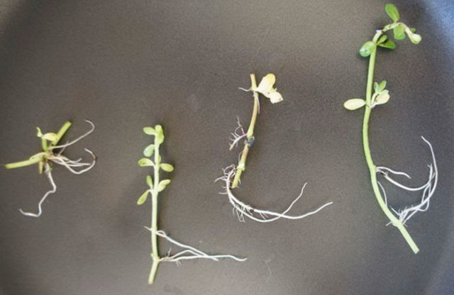 Després de 2-3 setmanes, els esqueixos de les flors suter arrelen