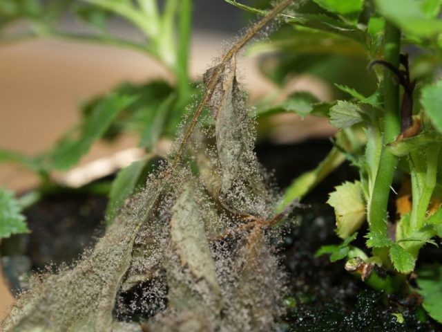 Anteriorment, els arbustos de bacopa ampelosos afectats per la podridura grisa es van ruixar amb aigua sabonosa