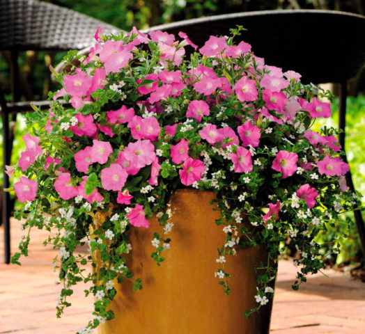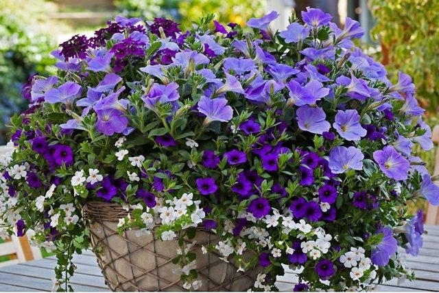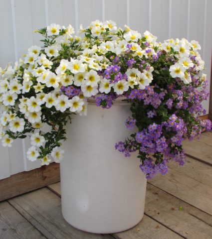Els floristes experimentats recomanen plantar flors de bacopa al voltant del perímetre i petúnies o altres cultius amb colors vius d’inflorescències, al centre de les olles.