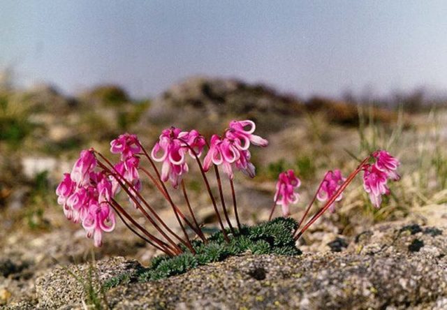A la natura, l'espècie de nòdul dicentra (D. cuccularia) creix a l'est d'Amèrica del Nord, en sòls arenosos pobres, així com als boscos humits d'Oregon i Washington. Aquesta és una de les espècies més curtes. El dicèntric creix fins a 20 cm i té flors blanques translúcides amb una franja groga i llargs esperons, com es veu a la foto. La floració comença a principis de primavera juntament amb la floració del fullatge.