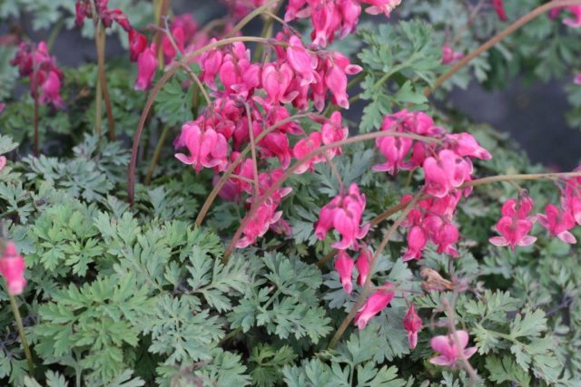 Dicentra creix bé a l’ombra parcial, on la floració és més llarga i més abundant, que normalment comença a finals de maig i dura una mica més d’un mes. Aleshores, la part superior s’apaga i l’arbust entra en estat de repòs fins a la primavera vinent. Espècie resistent a l’hivern, suporta les gelades fins a -350C amb refugi adequat per a l’arbust durant l’hivern.
