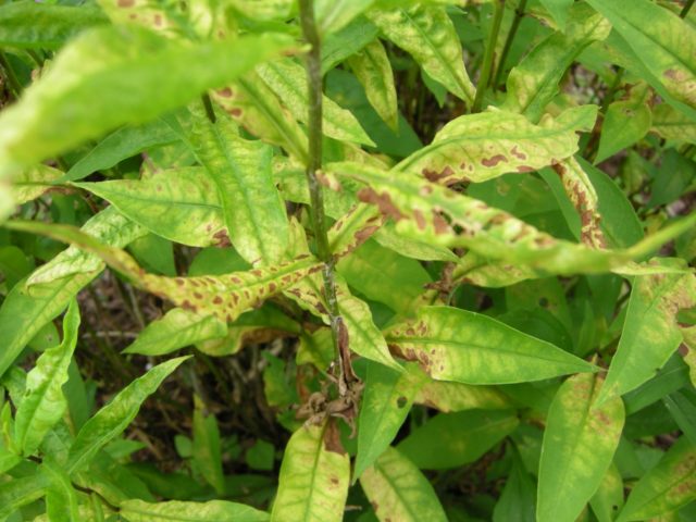 La malaltia de l'òxid té característiques similars, però afecta les plaques foliars del flox "Tatiana". Localment, comencen a assecar-se.