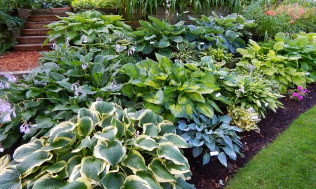 Les espècies hostes gegants es diferencien no només per la mida, sinó també per la forma i el color de les fulles, la forma en què estan acolorides, els tons i la tolerància a l’ombra. Això permet afinar la selecció de plantes per al disseny de cada lloc específic d’acord amb els requisits del paisatge existent i els desitjos del dissenyador.