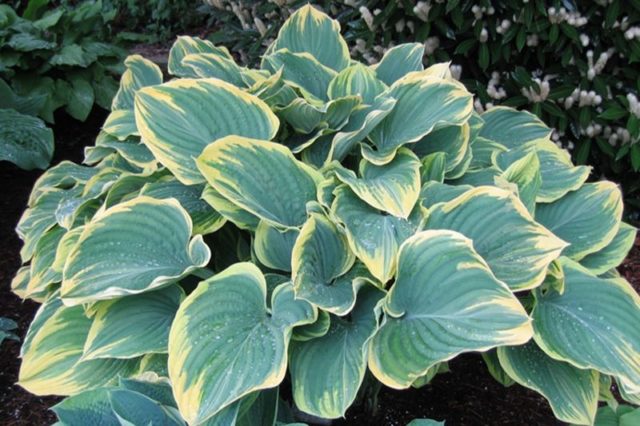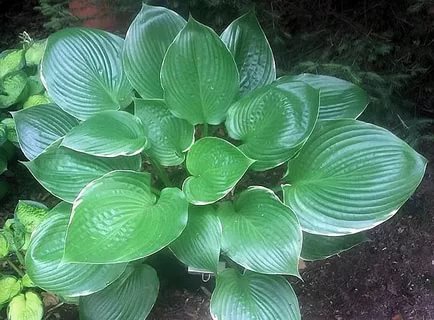 Una gran hosta Aureomarginata de Montana, de forma similar a un gerro, l’alçada del qual arriba a 0,6-0,7 m. Es distingeix per un ric color verd de plaques de fulles amb una característica vora groc clar.Amb el pas del temps, el color de la vora de les zones perifèriques canvia a lletós, mentre que les fulles joves centrals no el canvien.