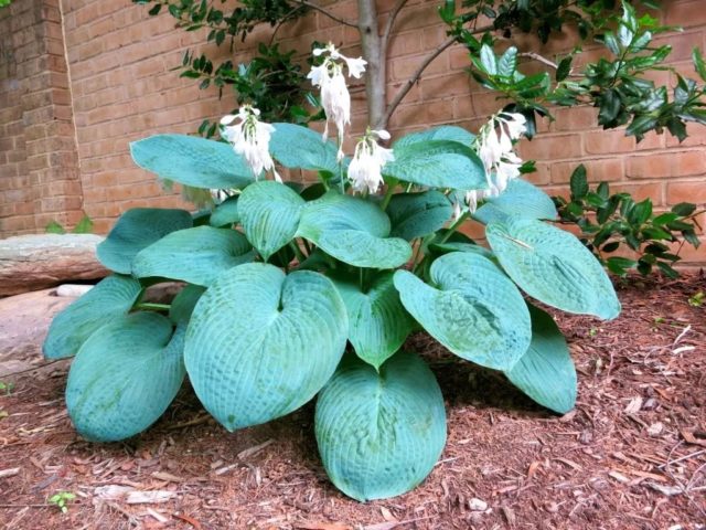 Les fulles a l’ombra tenen un color blavós, al sol s’il·luminen i es tornen verdes.La placa té forma de cor, està lleugerament doblegada per una barca, les vores estan lleugerament amuntegades. Els peduncles s’estenen lleugerament per sobre de la mida de l’arbust. Les flors són blanques, amb un lleuger to lila, apareixen relativament a principis de juny en relació amb altres espècies.