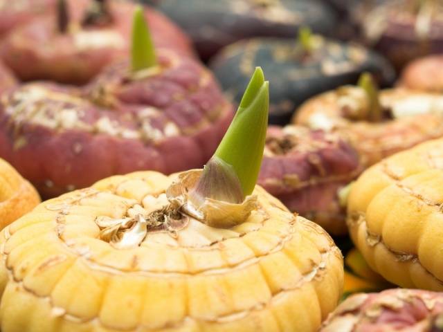S’han d’eliminar els bulbs vells. Les fulles i tiges de flors sanes s’han de retallar completament. Es permet deixar una tija petita, que no superi els 2 cm de llargada, i també s’ha de tallar les arrels. Pel que fa a les arrels dels nens, només cal escurçar-les lleugerament i, a la primavera abans de plantar-les, s’han d’eliminar completament.