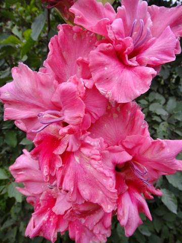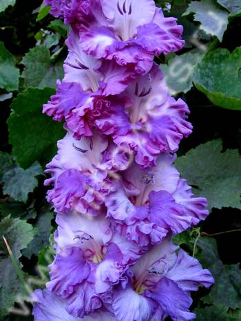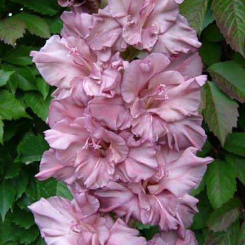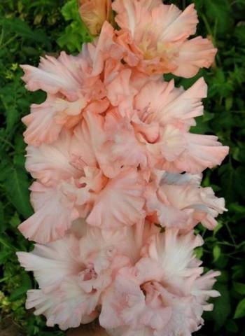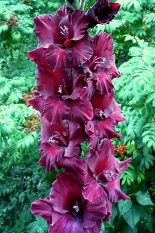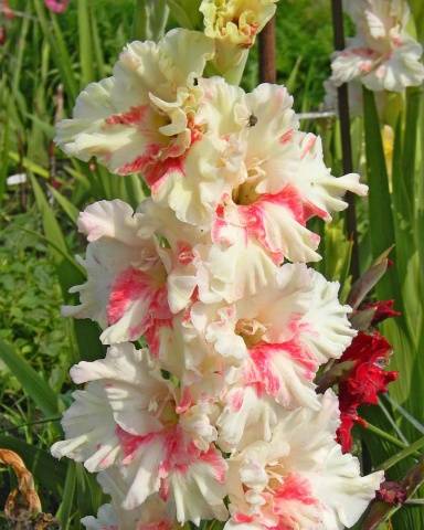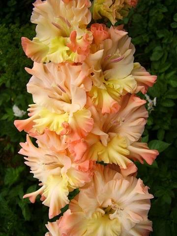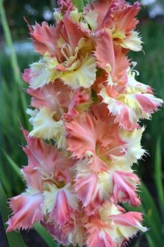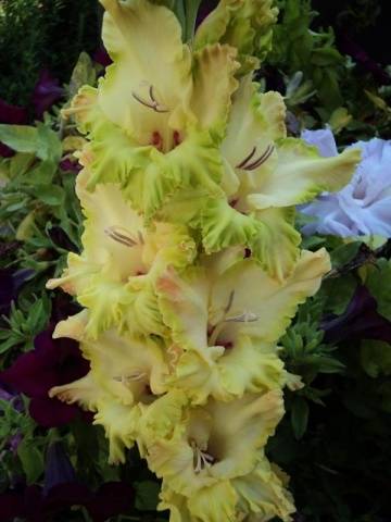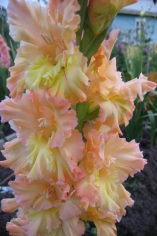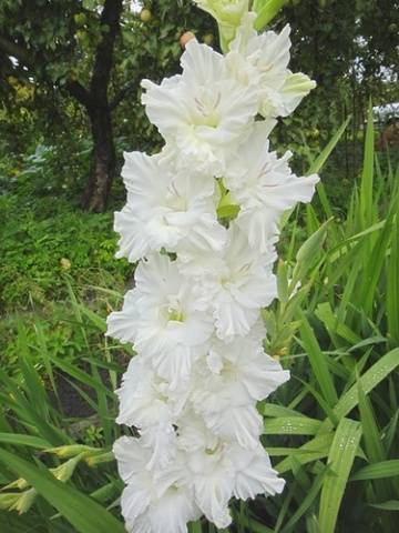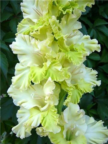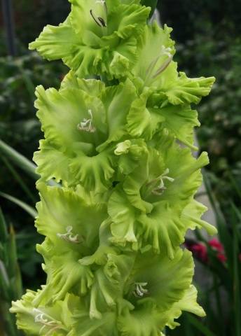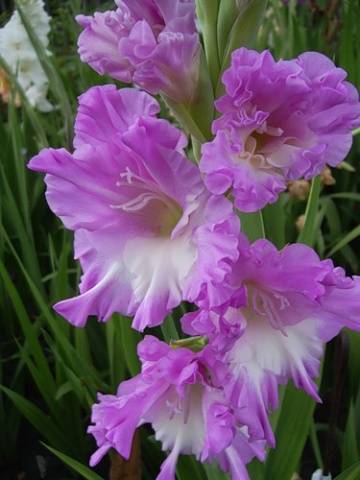 El gladiol té una inflorescència molt potent amb una bella iridescència de tons làctics de gerds. És molt popular.