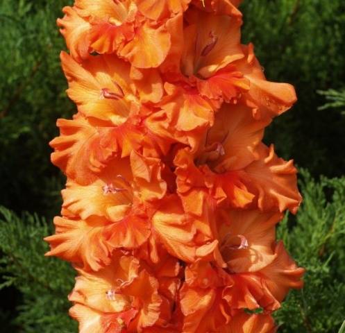 La inflorescència té una forma ideal i un ric color taronja-mel. Aquests gladiols creixen molt bé i són meravellosos quan es tallen.