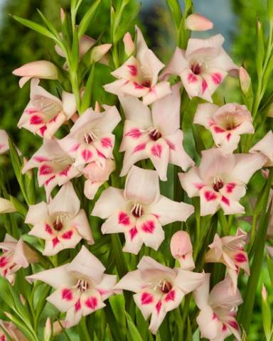 A continuació, es presentaran diverses varietats primerenques de gladiols del principal color blanc, però amb diversos patrons.
