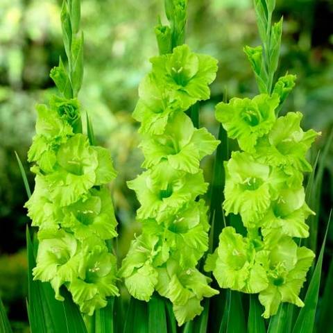 Els gladiols verds encara no es veuen tan sovint a les col·leccions de cultivadors de flors; són d’aspecte molt poc habituals. Les varietats més valuoses i interessants són aquelles en què el color de les flors és de color verd pur sense impureses grogues o blanques.