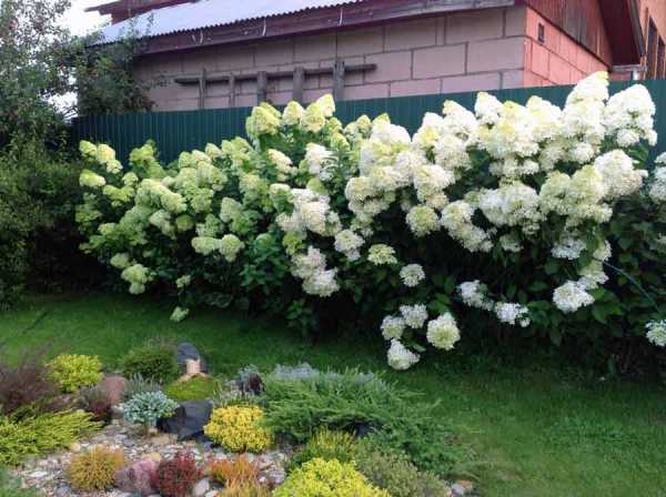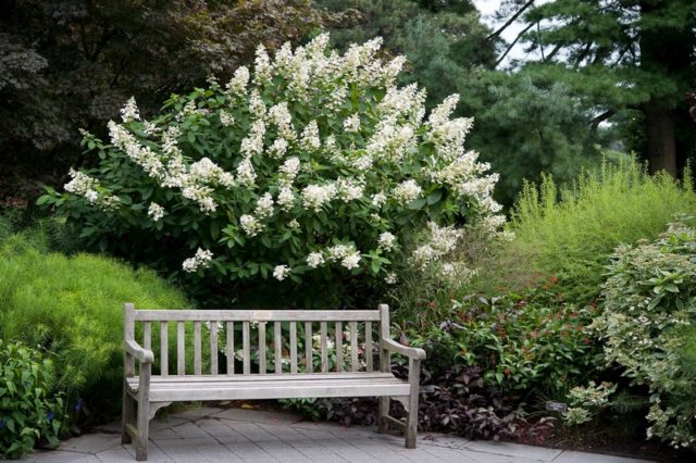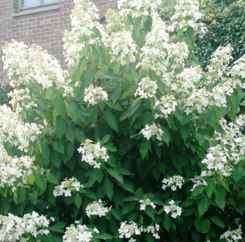 Un arbust gran i extens pot decorar qualsevol jardí. Hydrangea Levan s'utilitza tant en plantacions individuals com en grups. Té un aspecte preciós tant al centre del jardí com a les vores. Sovint la planta es col·loca al llarg de la casa, just al costat de l’entrada o no gaire lluny dels camins. A continuació, es mostren alguns exemples de com es pot utilitzar la hortènsia de Levan en el disseny de paisatges: