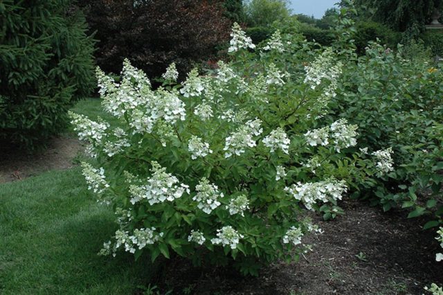L’hortènsia de Levan és un tipus d’hortènsia de panícules, que es valora no només per la seva alta decorativitat, sinó també pel seu agradable aroma, que recorda l’olor de la mel. En condicions favorables, l’arbust arriba a una alçada de 2,5-3 m. La hortensia forma una corona compacta i molt densa amb abundants inflorescències blanques i de color crema.