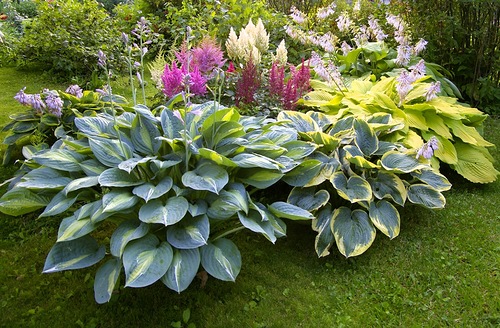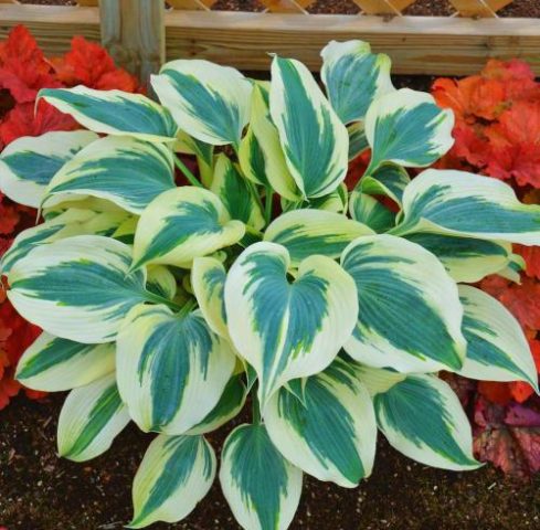 Hosta Blue Ivory està en perfecta harmonia amb altres varietats i colors vius