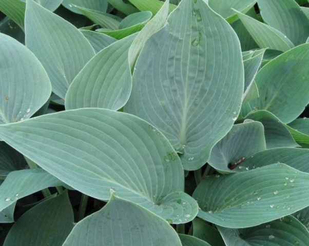 - Les fulles d’Hosta són grans, de color blau, es podria dir, de color verd-blau. El color silencia una mica la floració de la cera, però això només la fa més suau i tranquil·la. La placa també té avantatges pràctics: protegeix les fulles de la pèrdua d'humitat i de les cremades solars, de manera que la varietat hosta Halcyon tolera la plantació a l'ombra parcial o en un lloc assolellat igualment. La mida màxima de les fulles és de 16 cm x 10 cm. La textura és densa, la superfície està coberta amb ranures profundes longitudinals - venes. En forma de llança o en forma de cor amb els extrems punxeguts.