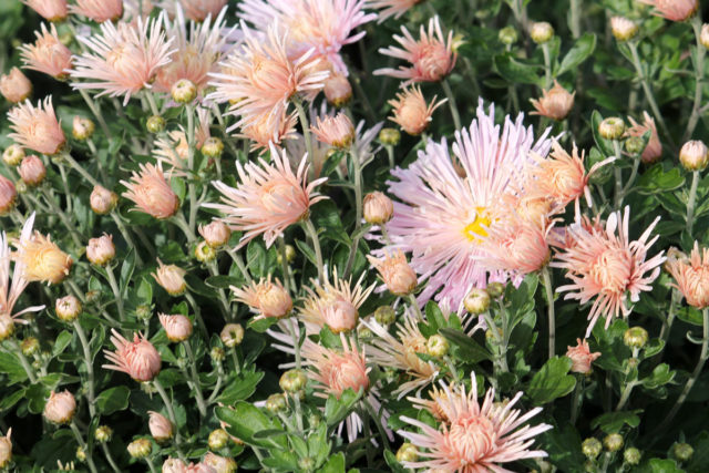 Hi ha moltes varietats de crisantems d’agulla amb diferents mides i tonalitats d’inflorescències. Amb la seva ajuda, podeu crear increïbles parterres de flors d’estiu i tardor.