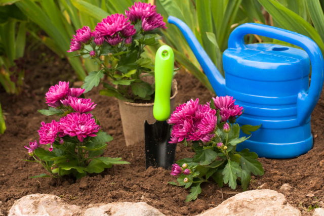 En plantar varietats altes de crisantems, és important proporcionar suport