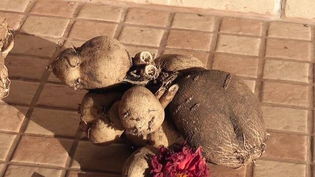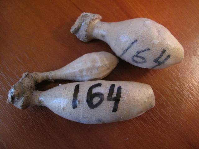 Remullem cada tubercle a l'argila durant uns segons, traieu-los i reserveu-los per assecar-los. Es pot afegir un fungicida a la solució d’argila. Després que l’argila s’hagi assecat, els tubercles es poden recollir en contenidors i emmagatzemar-los al soterrani. A la primavera, s’haurà d’eliminar amb cura la closca: amarada o trencada.