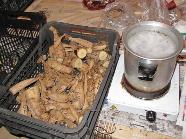 Emboliqueu amb cura els tubercles desinfectats i secs amb paper d'alumini, cadascun per separat. Els rizomes embolicats no s’assequen. També són menys propensos a la podridura, ja que no entren en contacte entre ells.