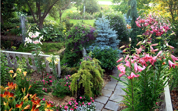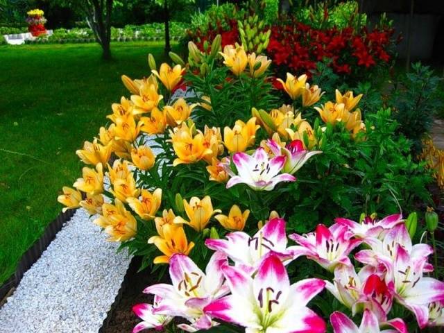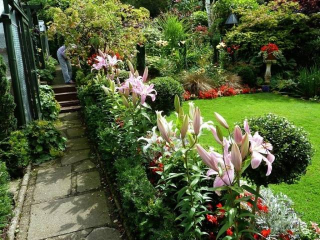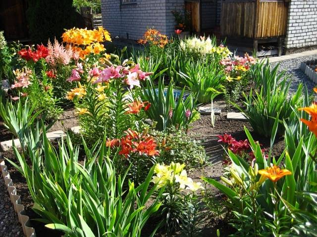 Com podeu veure a la foto següent, podeu plantar lliris al lloc al costat d’una varietat de plantes ornamentals i amb flors. El més important és observar les recomanacions següents:
