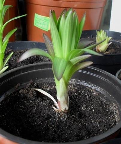 L’esquema de plantació dels bulbs germinats és lleugerament diferent. Els bulbs de lliri amb brots es planten un parell de setmanes després. És important que els brots joves i fràgils no es congelin durant les gelades de primavera.