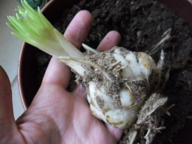 Si les condicions meteorològiques no són propícies per a la plantació, en aquest cas, podeu plantar els bulbs germinats en un recipient amb un substrat nutritiu. Les flors es conreen a casa i, quan arriba el moment oportú, es planten a terra oberta.