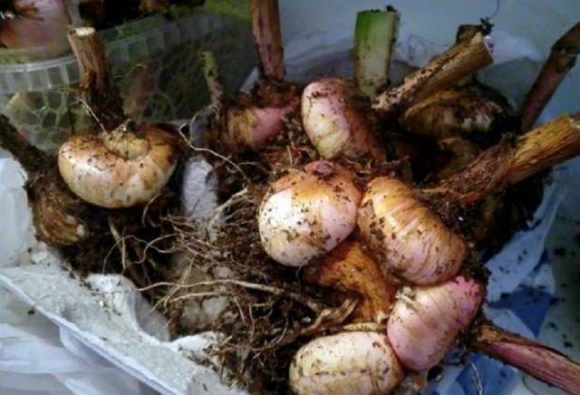 El procediment es realitza en un dia assolellat i sec. Abans d’excavar els bulbs, decidiu on guardar-los. Faran les caixes de cartró, bosses de tela, petites caixes de fusta. Prepareu recipients separats per a diferents varietats de gladiols per no confondre’ls durant l’emmagatzematge. Assegureu-vos de signar les caselles.