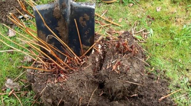 - amb compte, amb una forquilla, extreu el vell arbust, amb cura de no danyar el rizoma;