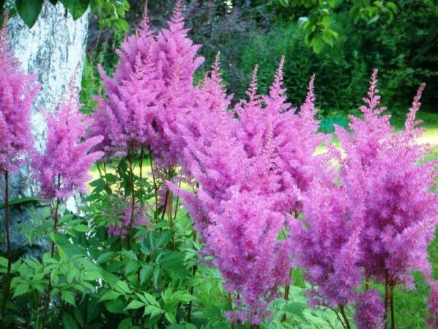 - astilba creix molt bé i floreix violentament a l’ombra d’edificis o arbres;