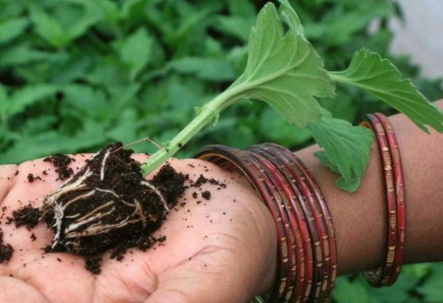 Podeu bussejar plàntules de crisantem de tres setmanes, que han format 3-4 fulles