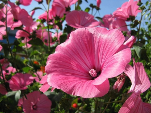 Lavatera és una planta increïblement bella amb grans flors que brillen amb un lluentor sedós. Es caracteritzen per una paleta de rosa, porpra, blau, groc i blanc. El diàmetre mitjà és de 8-10 cm. La lavatera és una planta amb un poderós sistema radicular, tiges fortes i una corona molt espectacular. Els arbustos poden créixer fins a 1-1,2 m d'alçada.