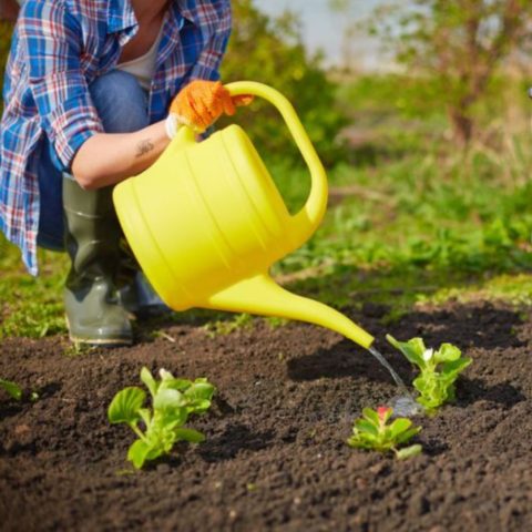 En la fase inicial, cal controlar constantment el contingut d’humitat del sòl i, en absència de pluja, regar. Per fer-ho, utilitzeu aigua sedimentada amb una temperatura de +20 graus. L’humiteig s’ha de fer cada vegada que el sòl s’assequi fins a una profunditat de 2-3 cm.