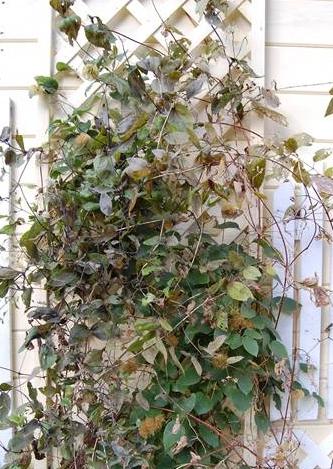 Sens dubte, les clematis que floreixen als brots de l'any passat també necessiten refugi per a l'hivern. Això requerirà brots molt desenvolupats a una alçada d’1 a 1,5 m. La liana s’elimina acuradament del suport i es posa a terra; primer caldrà preparar branques d’avet. Després de col·locar la vinya a les branques d’avet, es torna a cobrir amb branques d’avet a la part superior i es cobreix amb una capa de fulles seques de 20 cm, i després les branques d’avet de nou. En aquesta capa de refugis, finalment haureu d’estirar la pell de plàstic. Aquest enfocament us permet protegir les clematis de la varietat Cloudburst de la humitat i les branques d’avet de la penetració dels ratolins.
