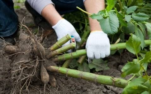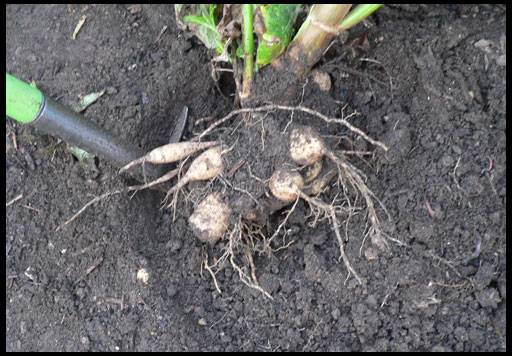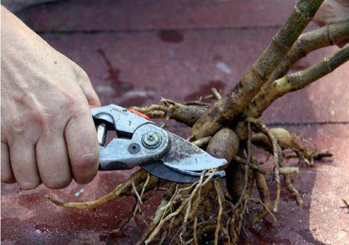 En excavar dalies, cal recordar que les tiges l’any vinent es formaran a partir dels brots de creixement ja existents. Es troben a la part inferior dels brots. Per tant, abans d’excavar els tubercles, traieu el mateix arbust deixant les tiges de 10-15 cm d’alçada.
