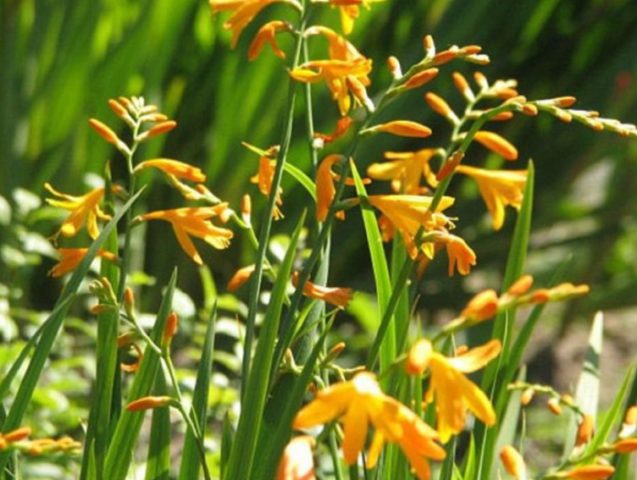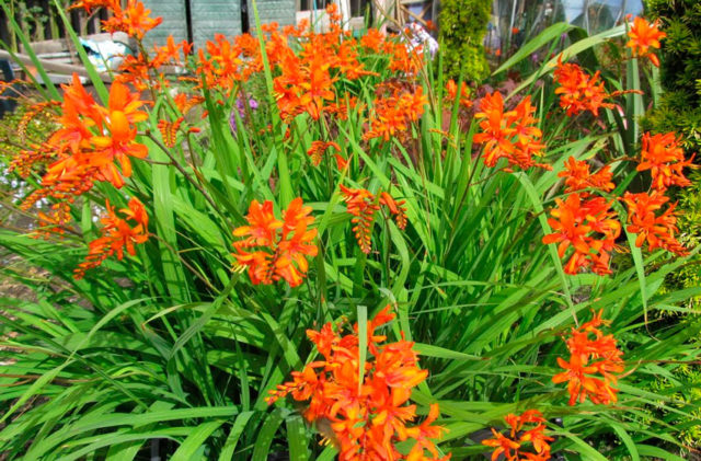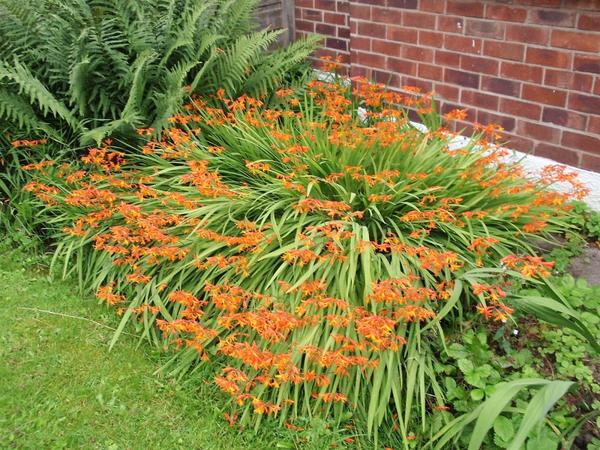 El crocosmia perenne es veu especialment bonic gràcies a la densa plantació de diversos bulbs