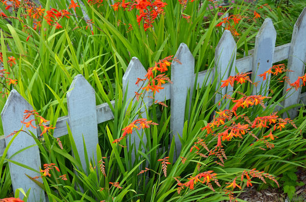 Els forats es reguen i es mulen amb torba, fenc, serradures o altres materials. La capa protectora reté la humitat, protegeix les plantes de temperatures extremes i males herbes. Val la pena tenir en compte que, fins i tot si es compleixen totes les condicions per plantar i deixar, les flors de crocosmia (a la foto) apareixeran només al cap de 3 anys. Però després, decoraran el jardí cada temporada.