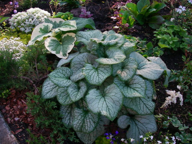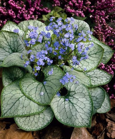 Amb una plantació massiva de brunners, es creen vorades, es fan tobogans alpins, la cultura s’inclou en mixborders amb plantes amb flors