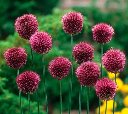 Allium de cap rodó és una ceba decorativa perenne amb flors esfèriques originals d’un color porpra pàl·lid. La planta es distingeix per la seva poca pretensió i la bona resistència hivernal. No necessita reg abundant, ja que tolera bé la sequera. L’allium es pot cultivar tant a partir de bulbs com de llavors.
