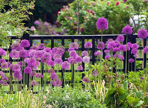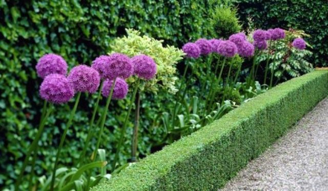 Utilitzant una densa plantació d’al·lium, podeu crear una bardissa