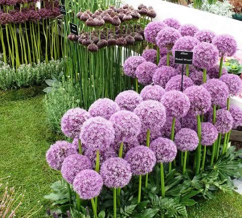 Les flors de cap rodó Allium criden l'atenció per la seva forma inusual i el seu agradable color porpra clar