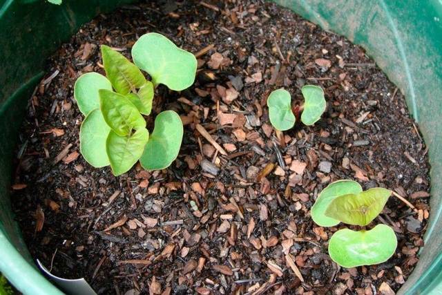 Ara cal treure les plàntules en un lloc càlid amb una temperatura constant de 23-25 graus.Al cap de 10-12 dies, les llavors germinaran i, a continuació, es podrà retirar el refugi i es podran col·locar les olles al davall de la finestra.