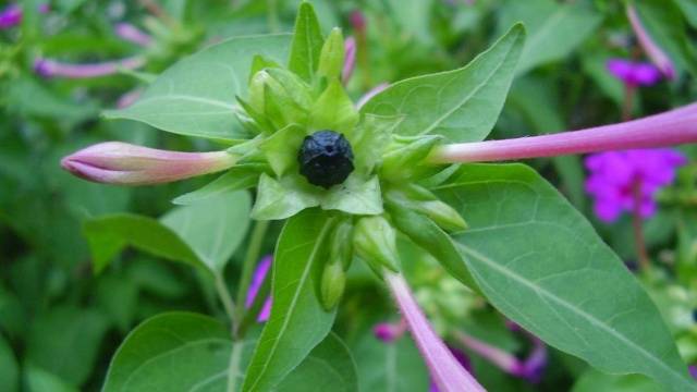 - el fruit de mirabilis és una caixa arrugada de color marró fosc, dins de la qual hi ha una llavor gran;