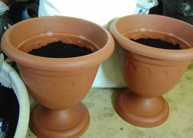 Els tubercles de Dahlia es planten en grans testos de ceràmica o en recipients amb un volum mínim de 15 litres, però aquest és el mínim i per a les flors més curtes amb un petit nòdul. Normalment, els contenidors per plantar dàlies tenen un volum de 30-40 litres. En cas contrari, la planta patirà una manca de sòl durant tota la temporada i donarà un nòdul feble, que probablement morirà a l’hivern.