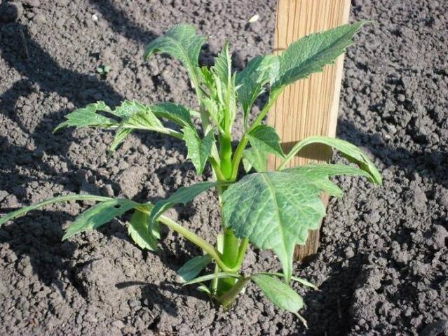 A la primavera, abans de plantar varietats elevades, assegureu-vos d’instal·lar-los un suport, ja que el risc és de danyar els tubercles si ho feu més endavant. Després de plantar la planta, regueu-la generosament.