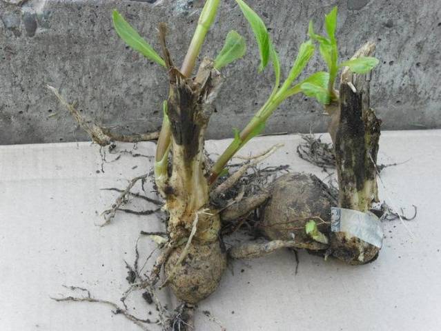 Quan van aparèixer els primers brots o només els cabdells de creixement es van inflar bé, va ser el moment de dividir els tubercles. Això s’ha de fer a temps, sense permetre que els brots siguin grans, de manera que hi ha el perill que durant la divisió els trenquem, ja que a la primavera, en les fases inicials de creixement, són molt fràgils.