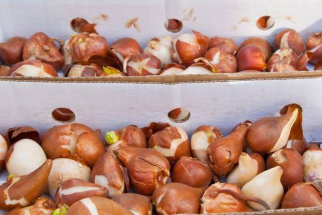 - abans de plantar-los, els bulbs de tulipes s’han de processar anualment, protegint-los de malalties i infeccions per fongs. Superant els processos de classificació, processament i plantació de bulbs, exposa les tulipes a un altre perill: les temperatures extremes i la humitat excessiva també afecten negativament la formació dels nens. Sovint es fan més petites i es tornen molt febles, cosa que condueix a una degeneració gradual de les característiques de la varietat;